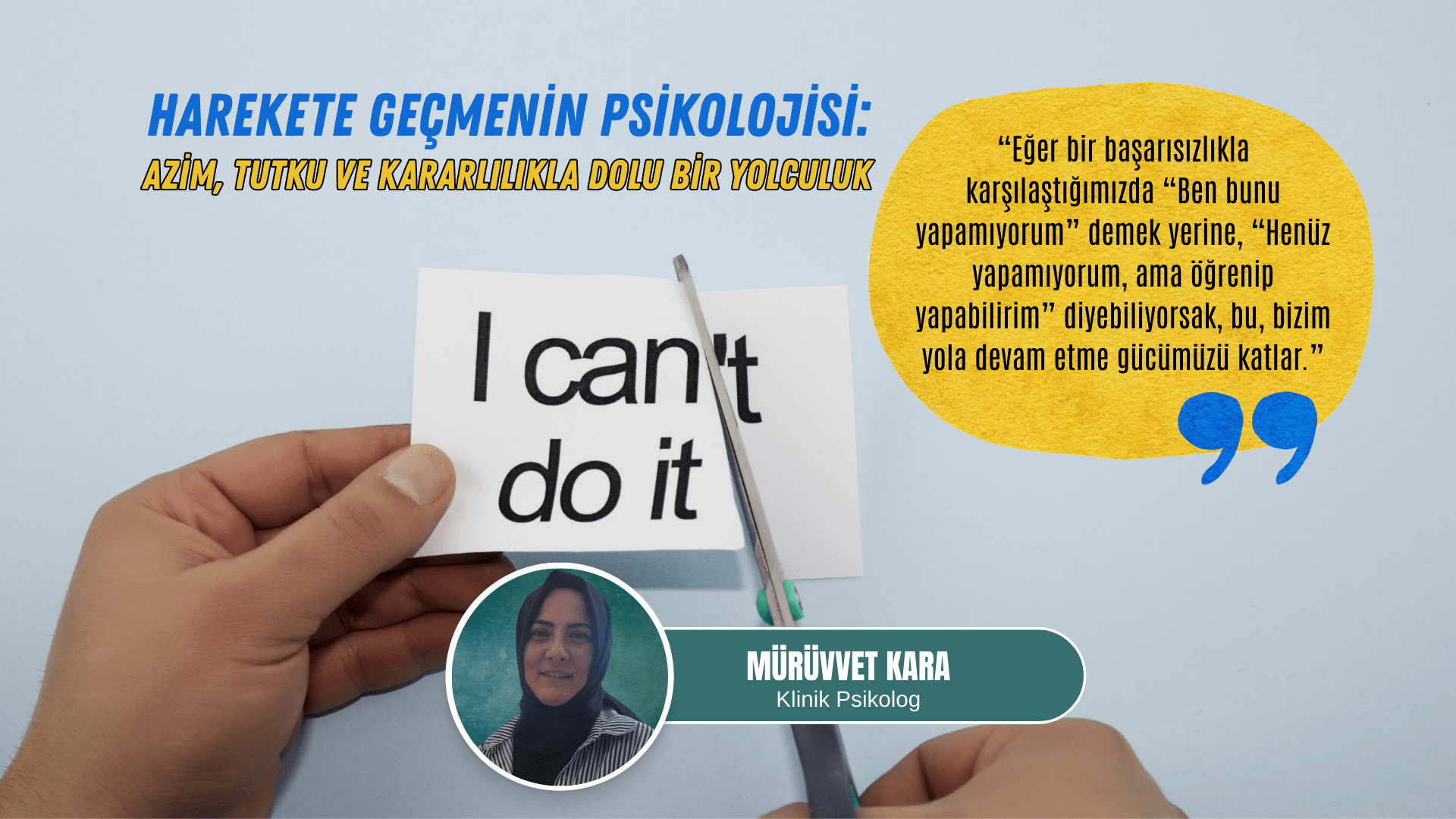 “Eğer bir başarısızlıkla karşılaştığımızda ‘Ben bunu yapamıyorum’ demek yerine, ‘Henüz yapamıyorum, ama öğrenip yapabilirim’ diyebiliyorsak, bu, bizim yola devam etme gücümüzü katlar.”