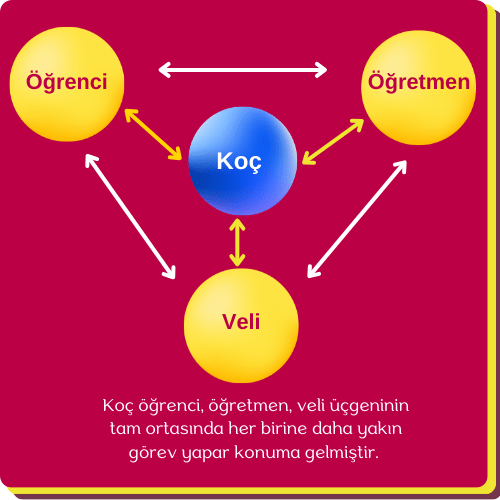 Bugüne dek okulda öğretmen-veli-öğrenci üçgeninin önemi vurgulandı. Ancak son yıllarda öğrenci koçu ile çalışmanın değeri çok daha iyi fark edildi. Öğrenci koçları, bu üçgenin tam ortasında yer alarak sisteme destek verir: