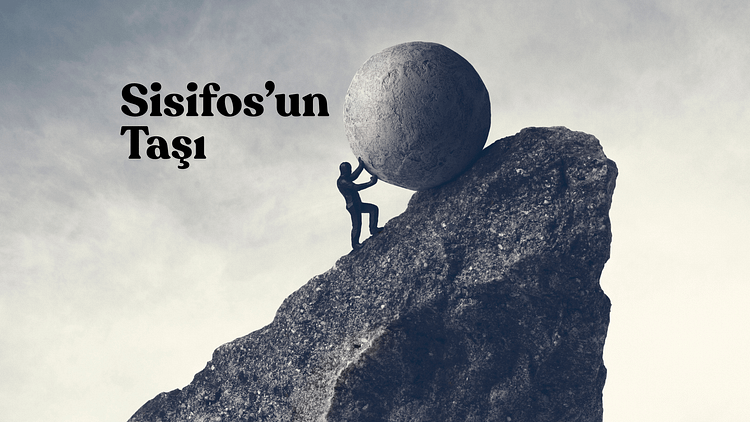 Yunan mitolojisinde hilekârlığı ve kibri nedeniyle Sisifos, tanrılar tarafından büyük bir kayayı dik bir tepenin doruğuna yuvarlamaya mahkûm edilir. Ne zaman kayayı tepeye ulaştırsa, taş yine yuvarlanır ve Sisifos her şeye en baştan başlamak zorunda kalır.